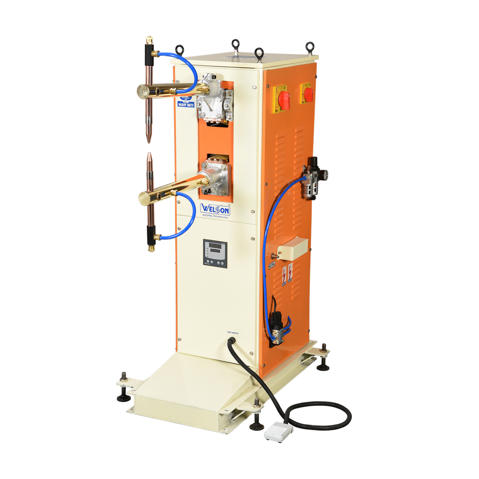 “WELSON” Rocker ARM pneumatic operated spot welding machine are offered in 15, 20 and more KVA models. Pneumatic operated spot welding machine is a type of resistance spot welder designed for high precision welding tasks that require consistent pressure and automated control. It uses compressed air [pneumatics] to operate the welding arms and electrodes with electric foot in it. This welder provides speed and consistency with high quality welds.