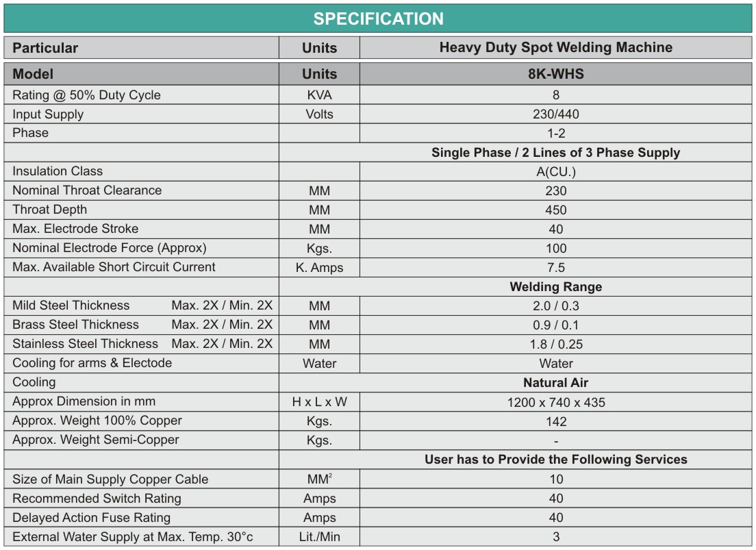 Weld Pressure: Adjustable max pressure levels are divided from a heavy-duty compression spring mounted on a pressure rod with routine calibrated nut. Here is a special arrangement in the machine minimizes operator fatigue and ensures simple setting.