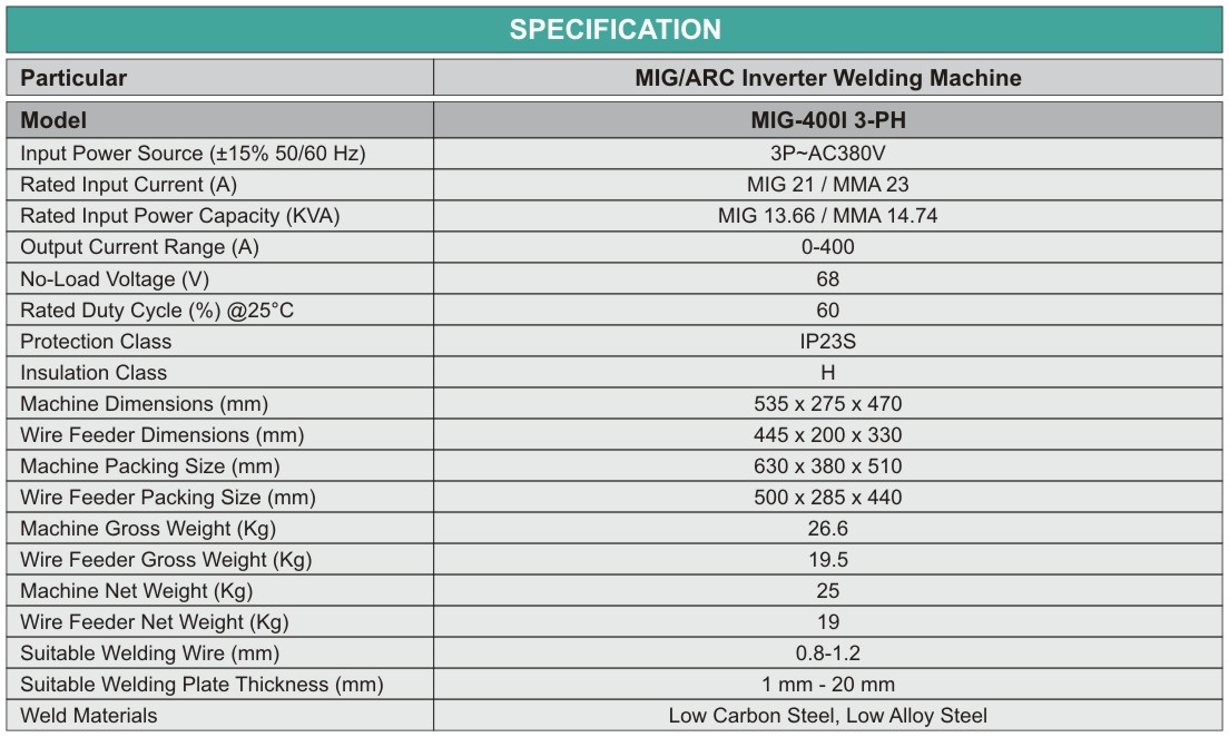MIG/ARC INVERTER WELDING MACHINE 400I 3-PH