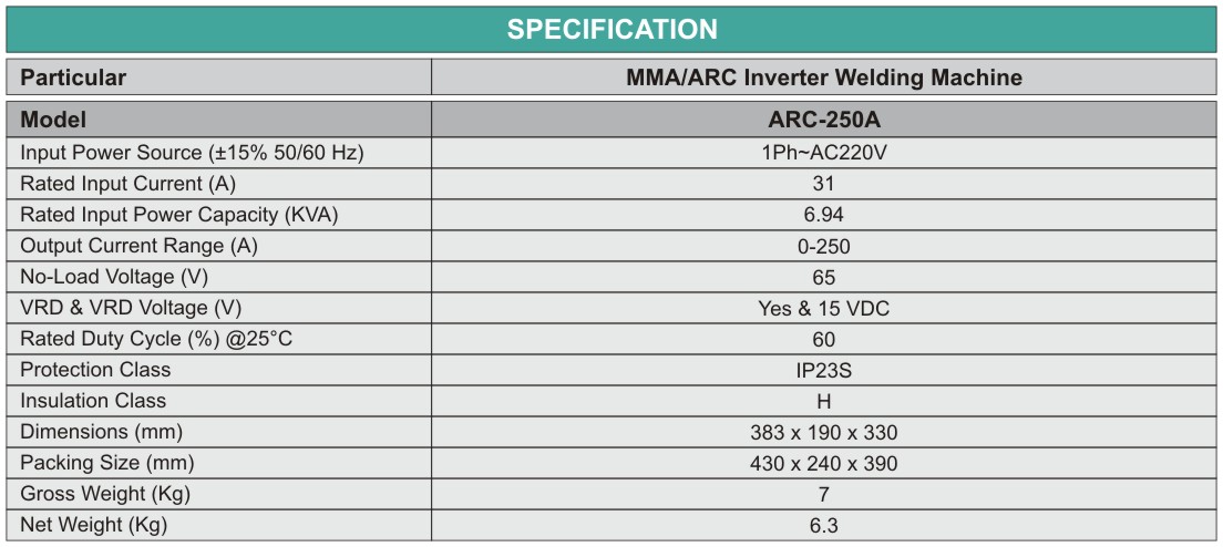 Welson Welding” presents a MMA/ ARC INVERTER WELDING MACHINE ARC-250A