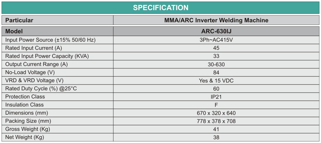 ” presents a MMA/ ARC INVERTER WELDING MACHINE ARC-630IJ