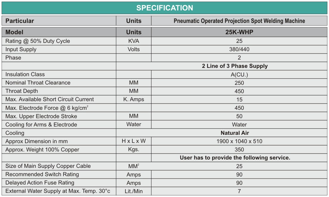 PNEUMATIC OPERATED PROJECTION SPOT WELDING MACHINE WITH MICRO CONTROLLER 25 K WHP