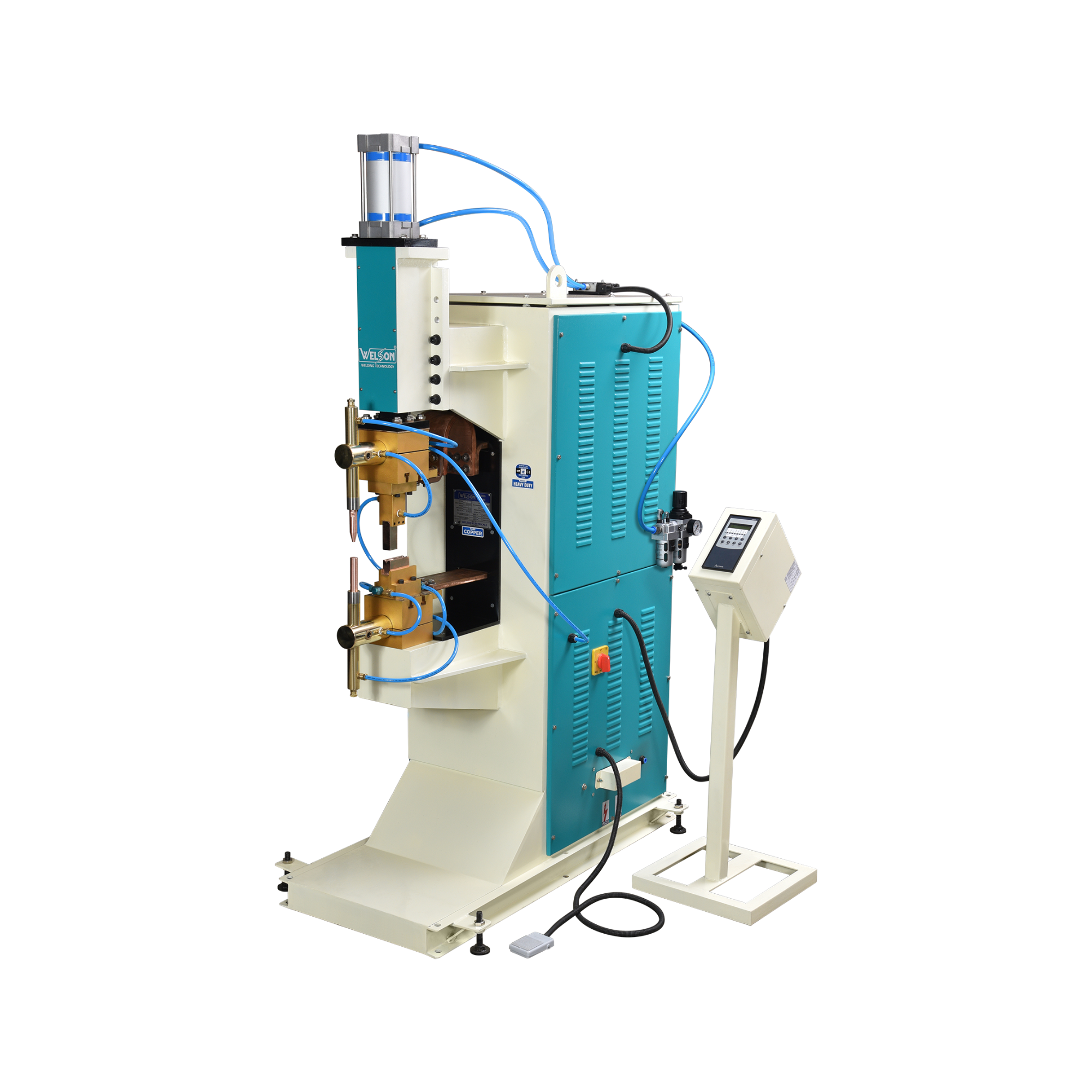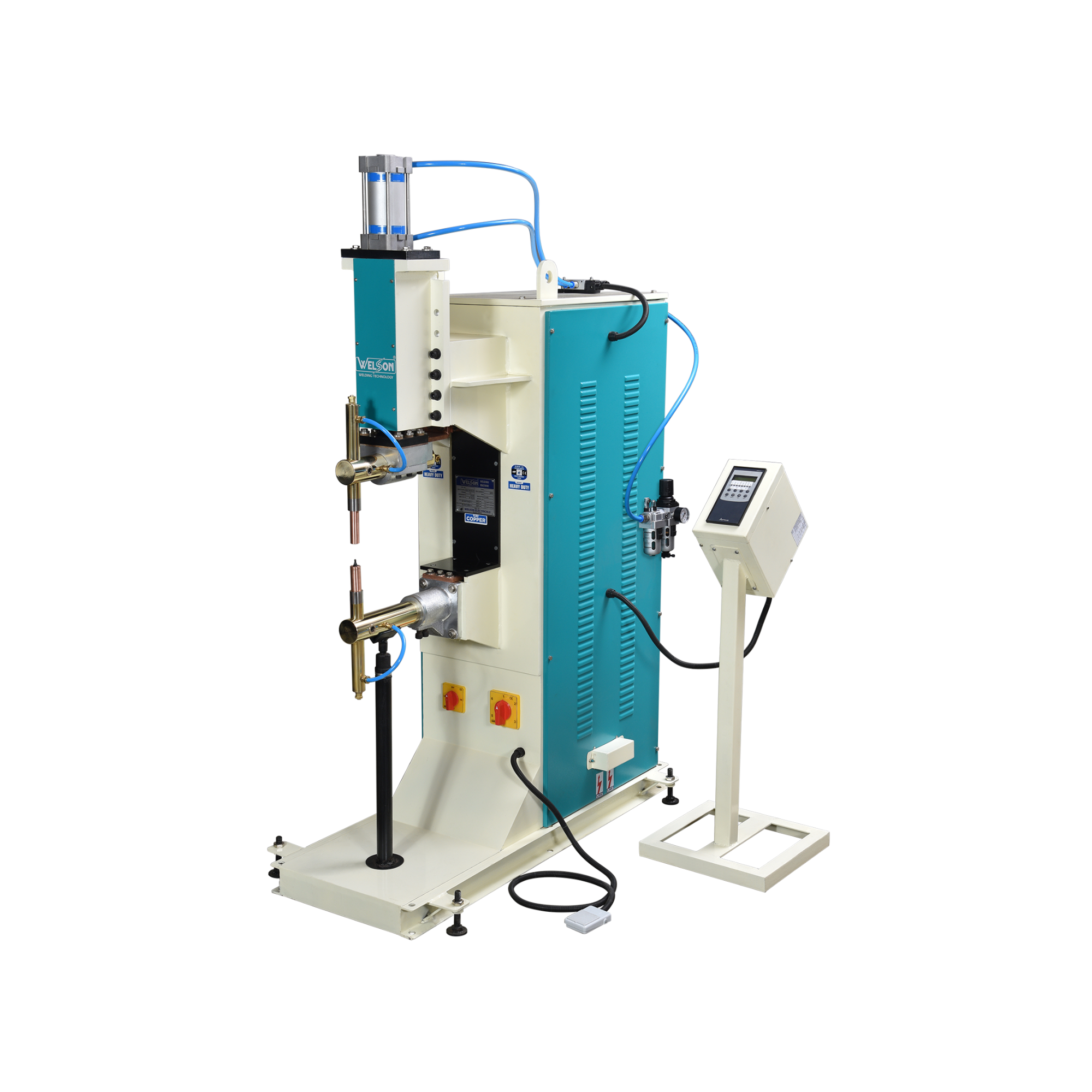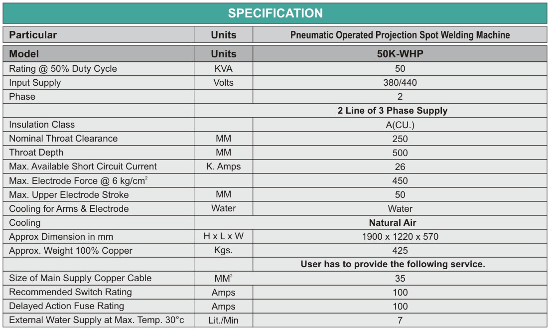 Weld Pressure: Adjustable max pressure levels are divided from a heavy-duty compression spring mounted on a pressure rod with routine calibrated nut. Here is a special arrangement in the machine minimizes operator fatigue and ensures simple setting.