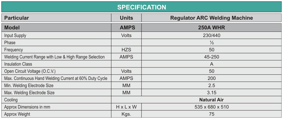 REGULATOR ARC WELDING MACHINE 250A WHR