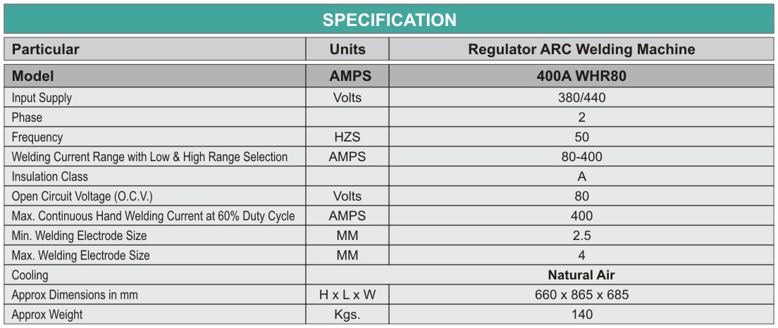 REGULATOR ARC WELDING MACHINE 400A WHR80