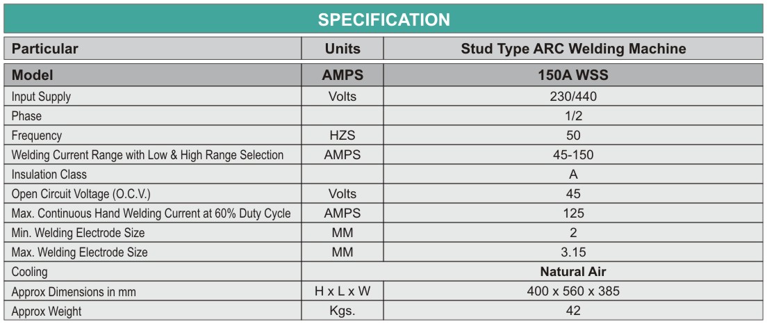 STUD TYPE ARC WELDING MACHINE 150A WSS