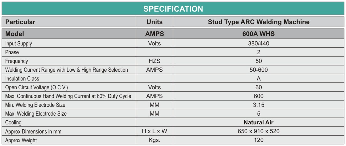 STUD TYPE ARC WELDING MACHINE 600A WHS