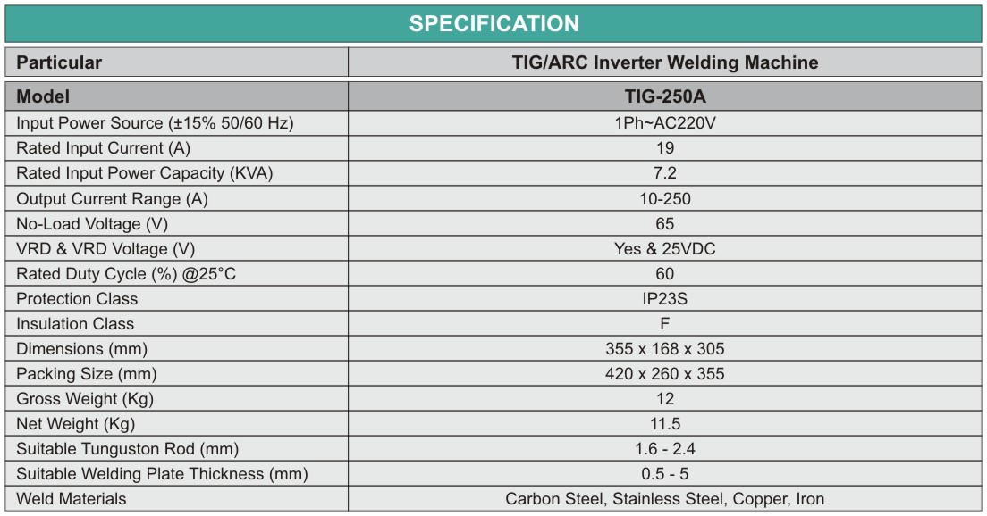presents a wide range of TIG/ ARC INVERTER WELDING MACHINE TIG-250A
